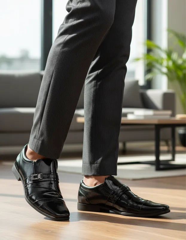 Sapato Social Masculino é a escolha ideal para quem busca elegância e conforto em qualquer ocasião. Confeccionado em couro legítimo, possui acabamento sofisticado, costuras reforçadas e design clássico que combina facilmente com ternos e trajes sociais. A palmilha macia garante bem-estar durante todo o dia, enquanto o solado antiderrapante oferece mais segurança ao caminhar.